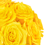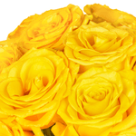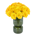 Arranjo em vaso de vidro verde com rosas amarelas premium.