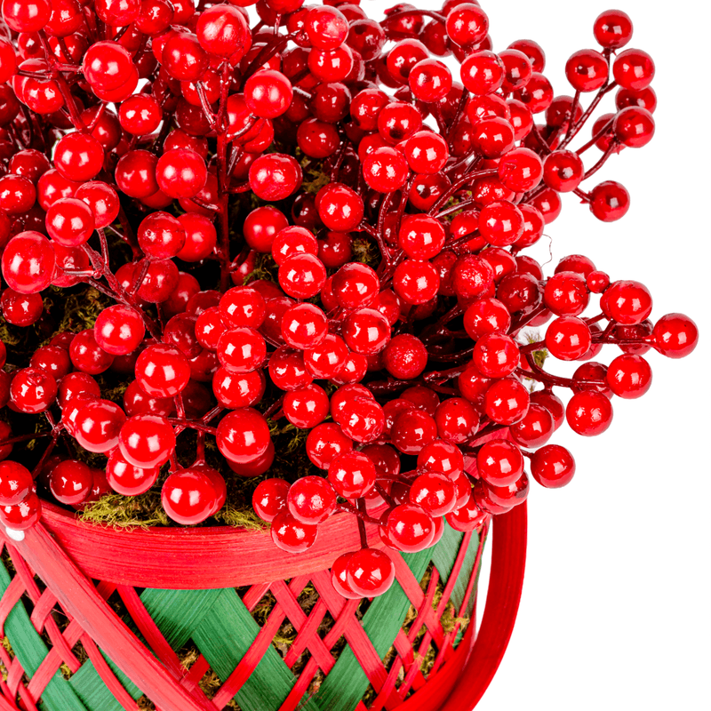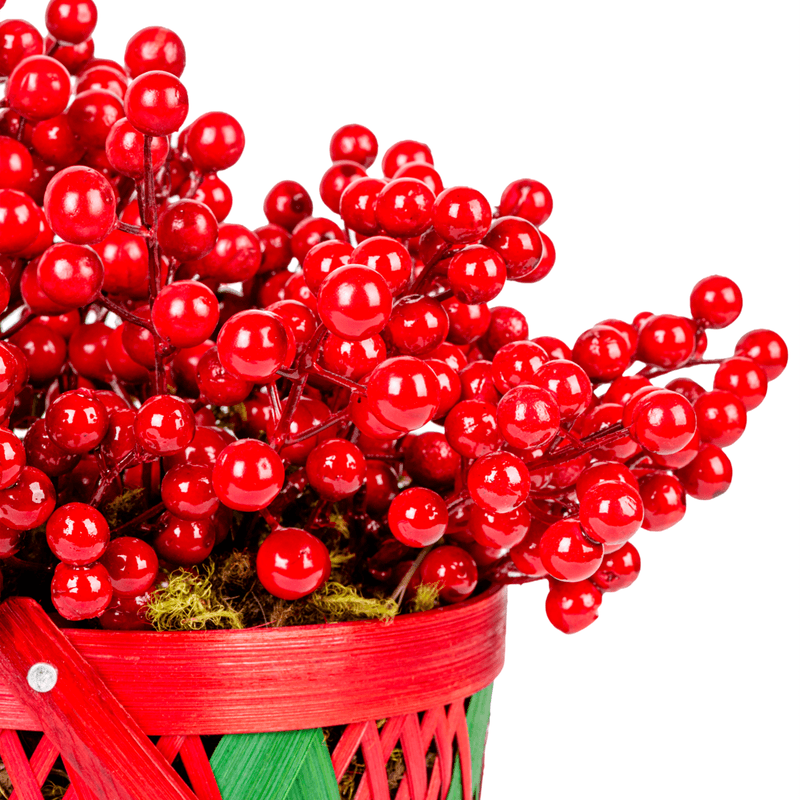Cestas (vermelhas/verdes) - Pequena com musgo + bolinhas vermelhas