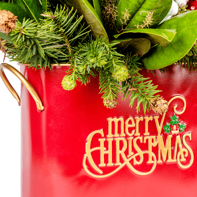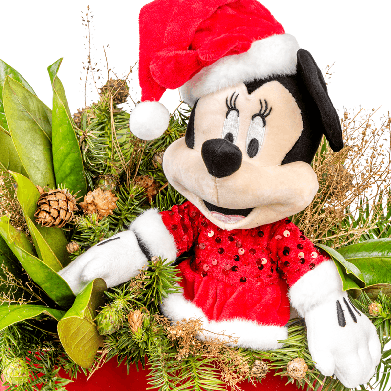 Balde vermelho de Natal (Formato de tambor - vermelho e dourado) com a Minnie Mouse